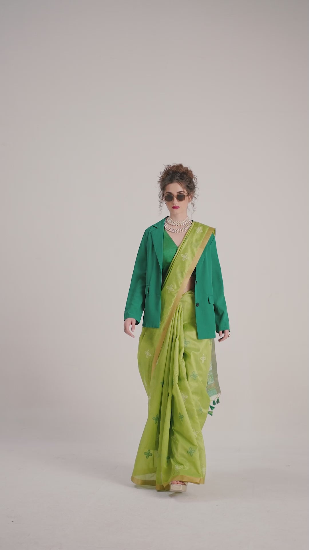 Green- Crafted from lightweight and luxurious art silk, offering a rich and elegant drape.