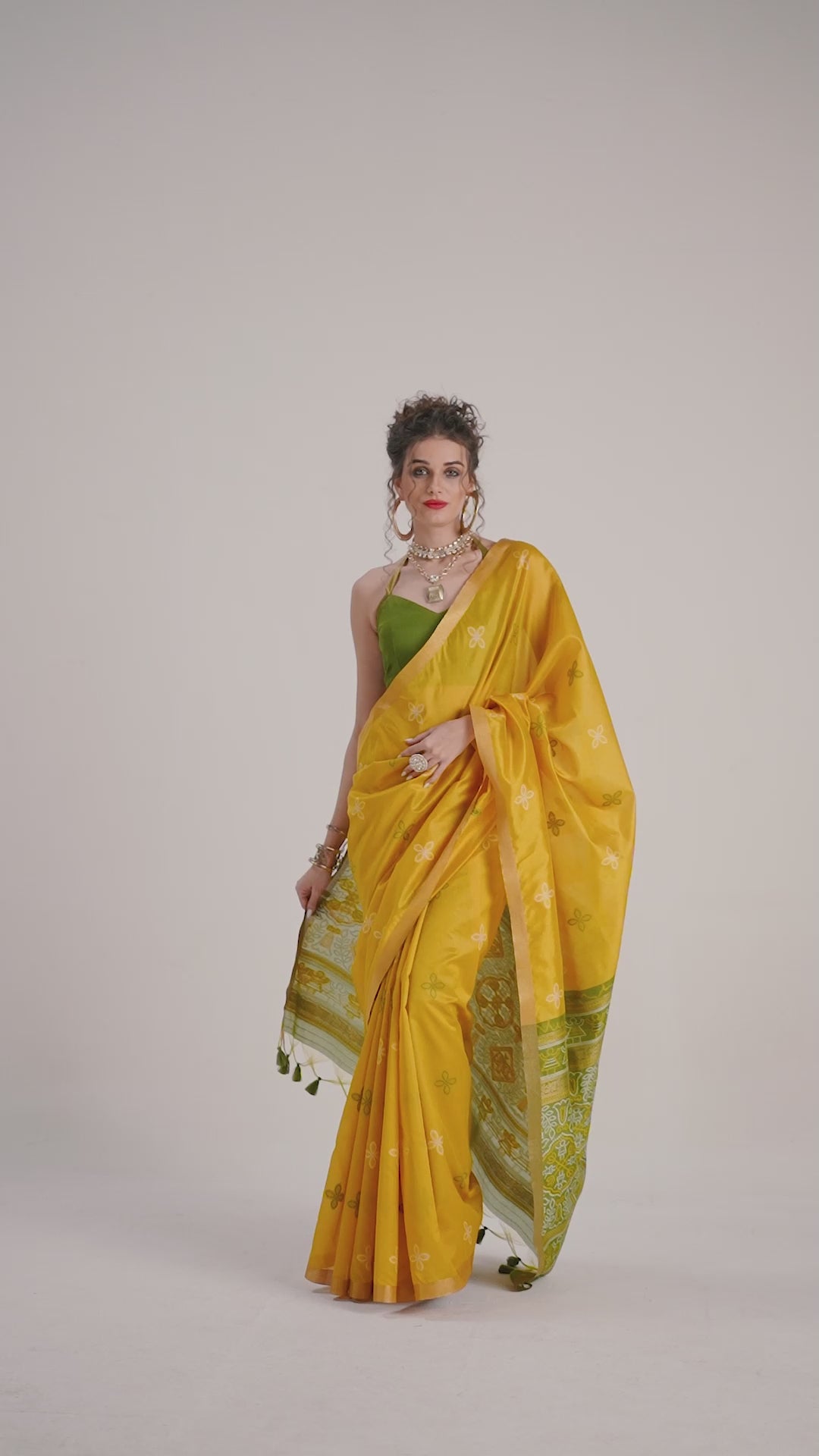 Yellow Green- Crafted from lightweight and luxurious art silk, offering a rich and elegant drape.
